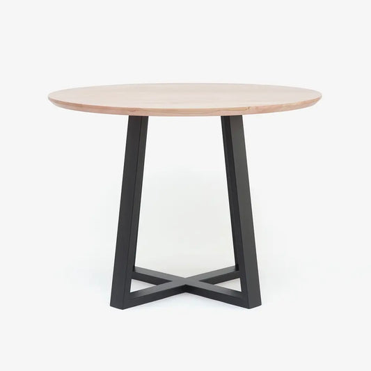 Mesa de comedor redonda en lenga y metal