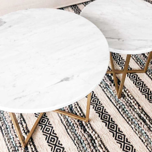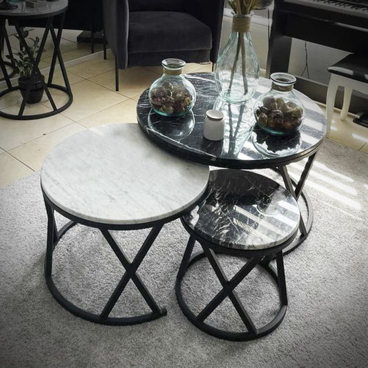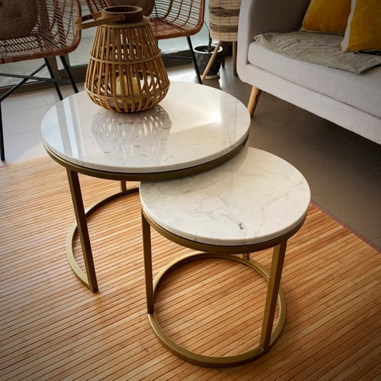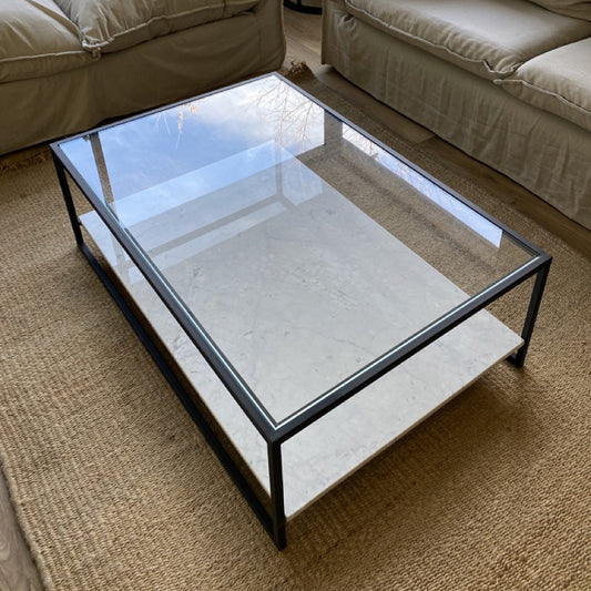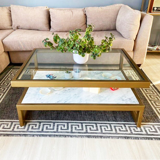 Mesa de centro en mármol y vidrio doble bandeja Cárcamo
