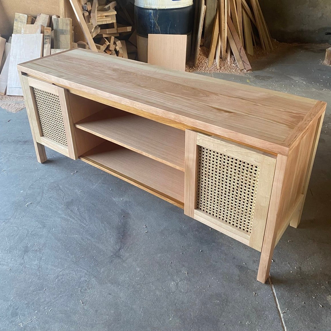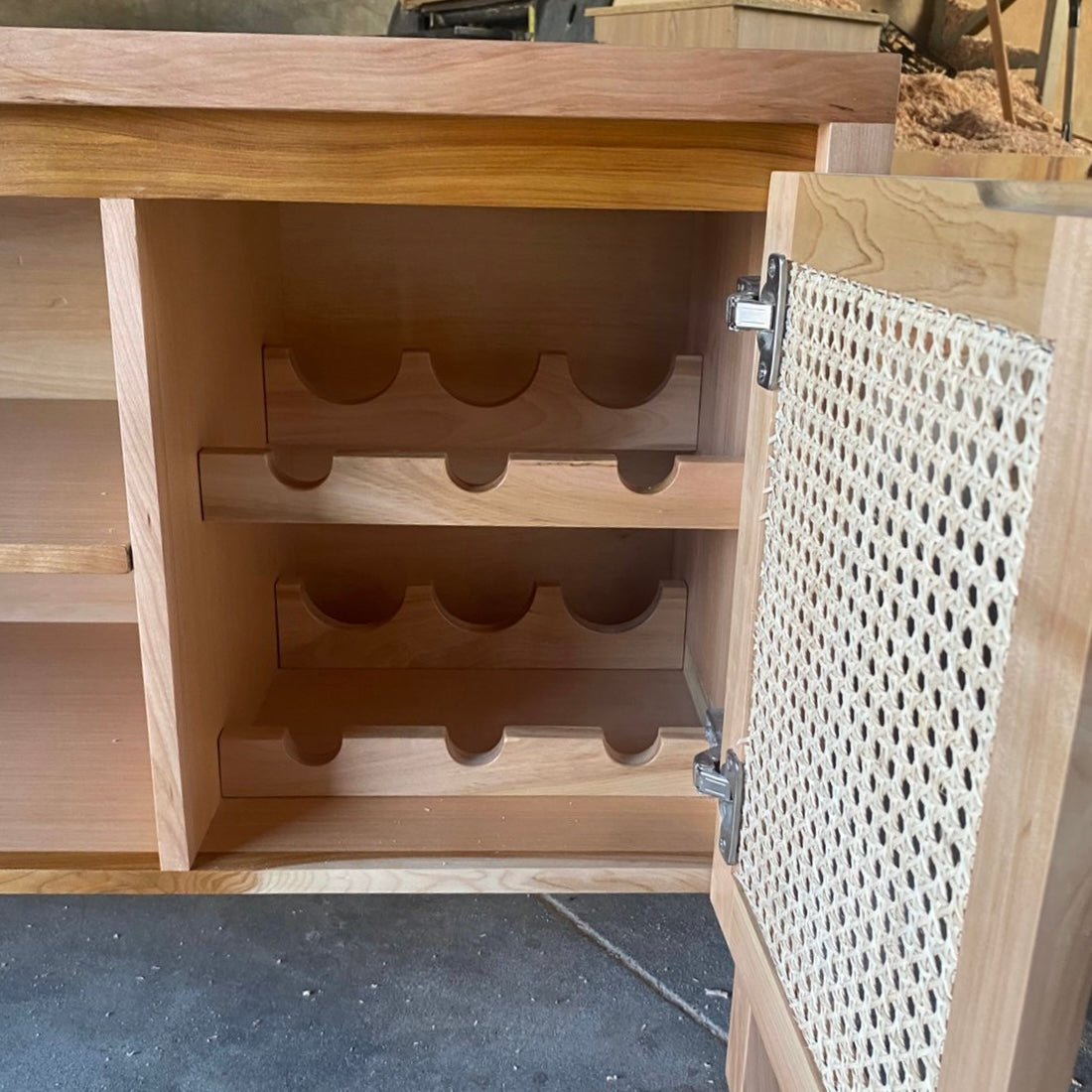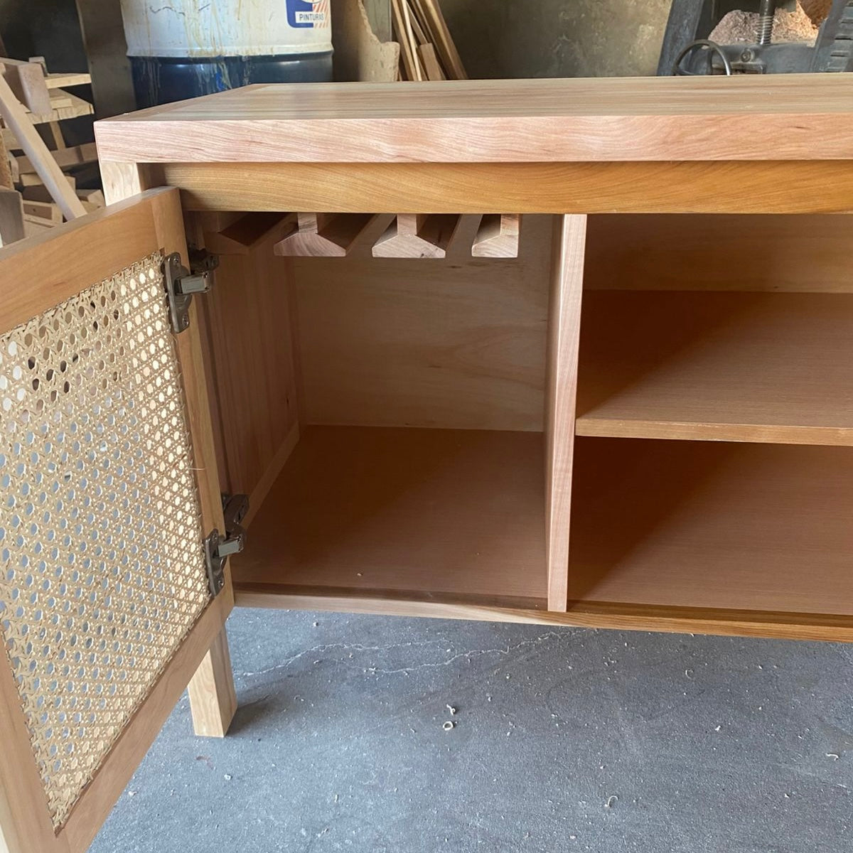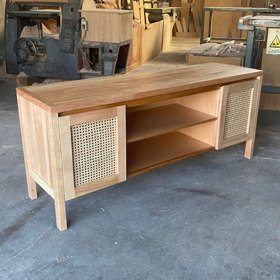 Buffet de alta calidad fabricado en madera de lenga y detalles en ratán natural.