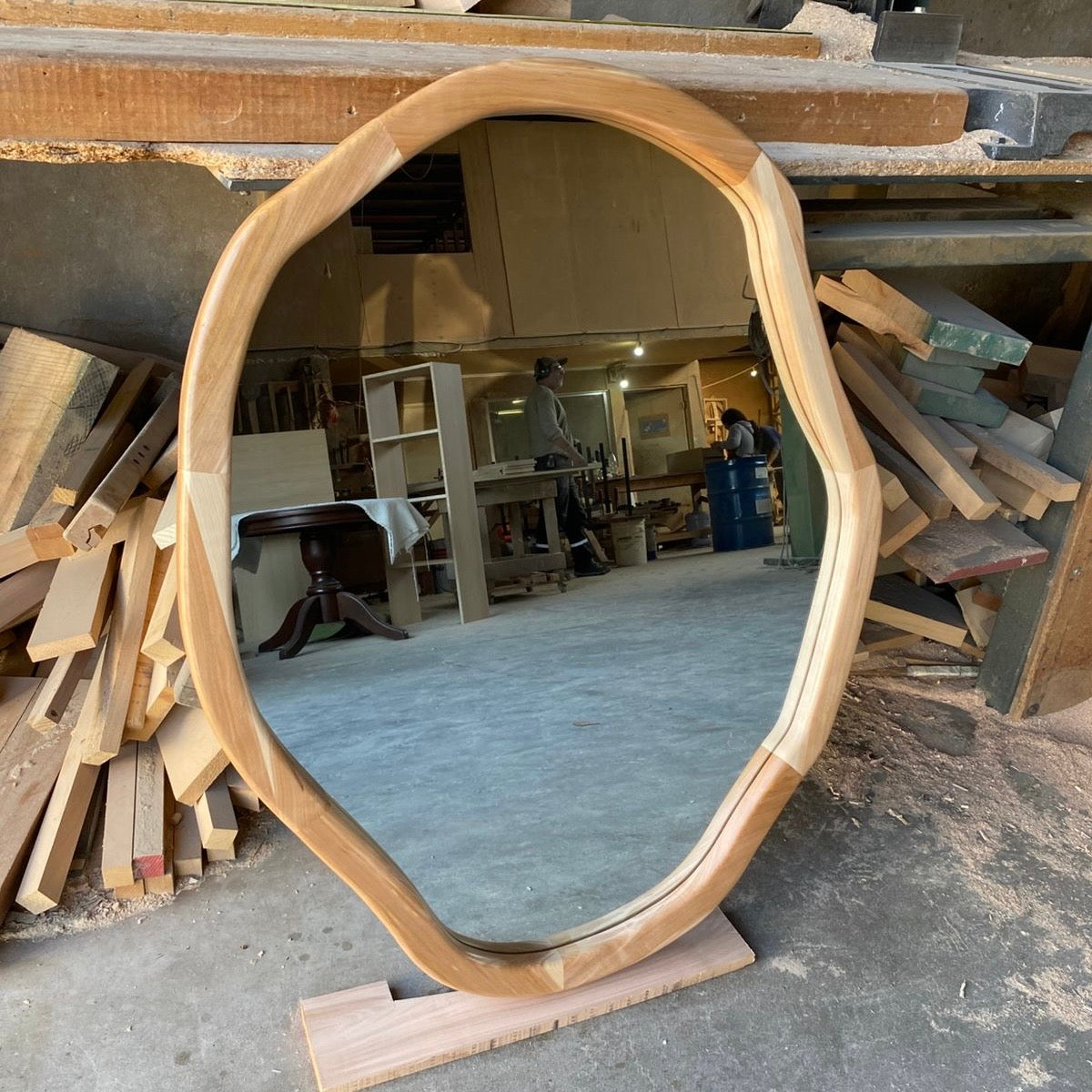 Cada espejo que fabricamos es una pieza única, creada artesanalmente en nuestro taller con maderas nativas chilenas como lenga, raulí o coigüe. Cada marco se trabaja con precisión y dedicación, resaltando las vetas naturales y el carácter propio de la madera.