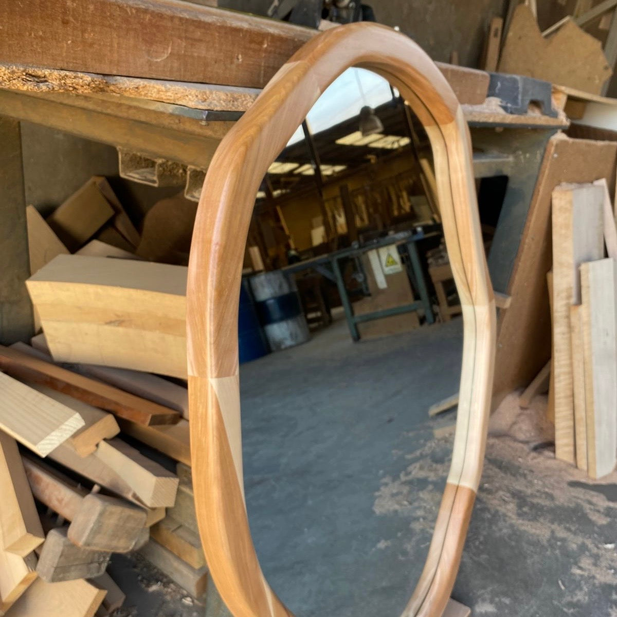 El Espejo curvo en Lenga, es una obra de artesanía excepcional que combina la durabilidad y belleza de la madera de lenga con un diseño elegante y curvado.