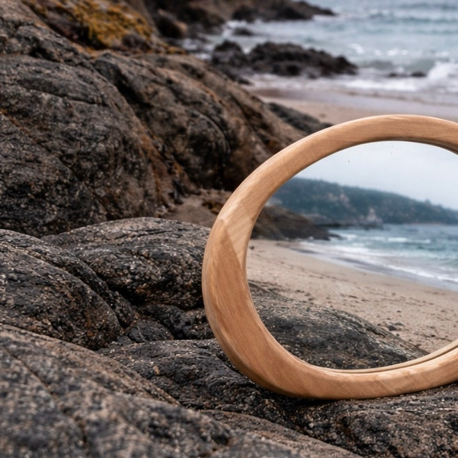 Cada espejo que fabricamos es una pieza única, creada artesanalmente en nuestro taller con maderas nativas chilenas como lenga, raulí o coigüe. Cada marco se trabaja con precisión y dedicación, resaltando las vetas naturales y el carácter propio de la madera.