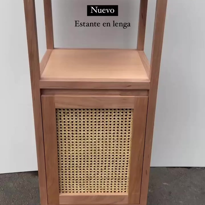 Cada estante o repisa en lenga y ratán es fabricado a mano en nuestro taller por artesanos chilenos, cuidando cada unión, textura y detalle. La combinación de madera nativa de lenga con el tejido natural del ratán aporta calidez, ligereza visual y un carácter único a cada pieza.