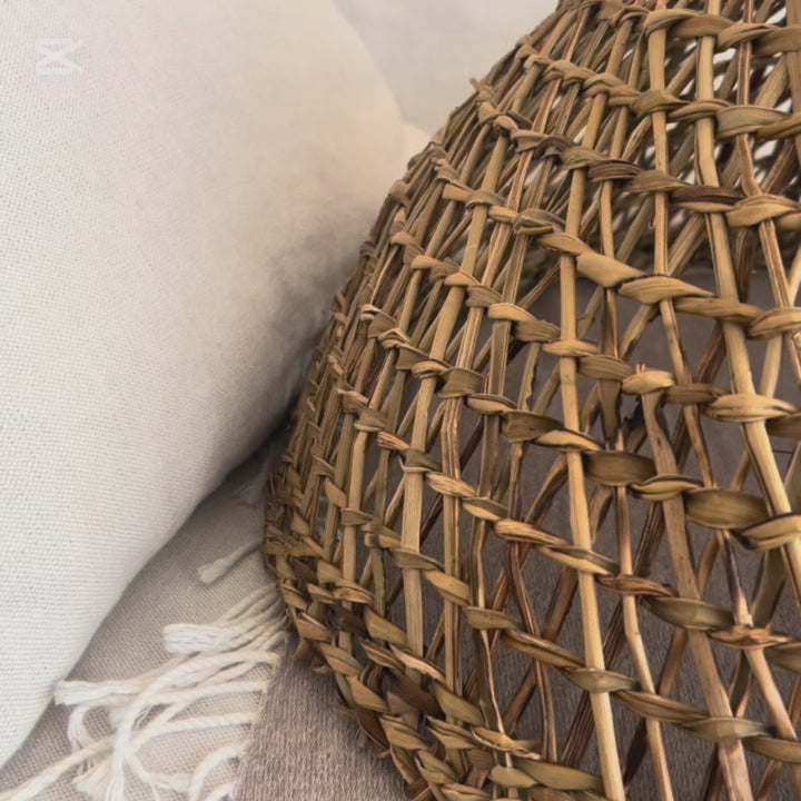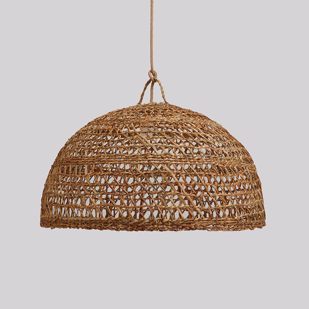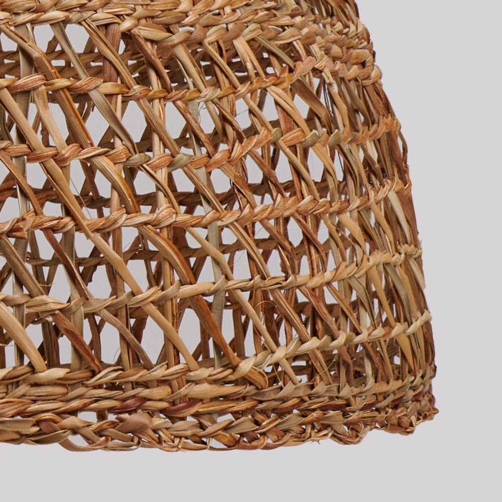 Esta lámpara no solo ilumina el espacio con su luz suave y acogedora, sino que también añade un toque orgánico y elegante a cualquier ambiente. Su diseño tejido a mano la convierte en una pieza de iluminación distintiva, ideal para aquellos que buscan destacar la belleza de lo artesanal en su hogar.