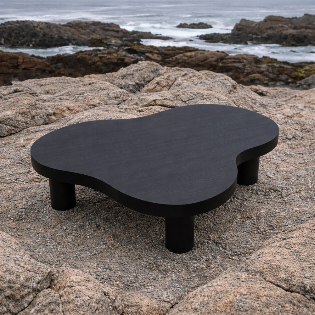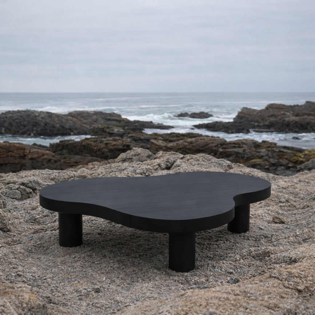 Mesa centro orgánica/ madera roble americano/ lacado negro acabado mate