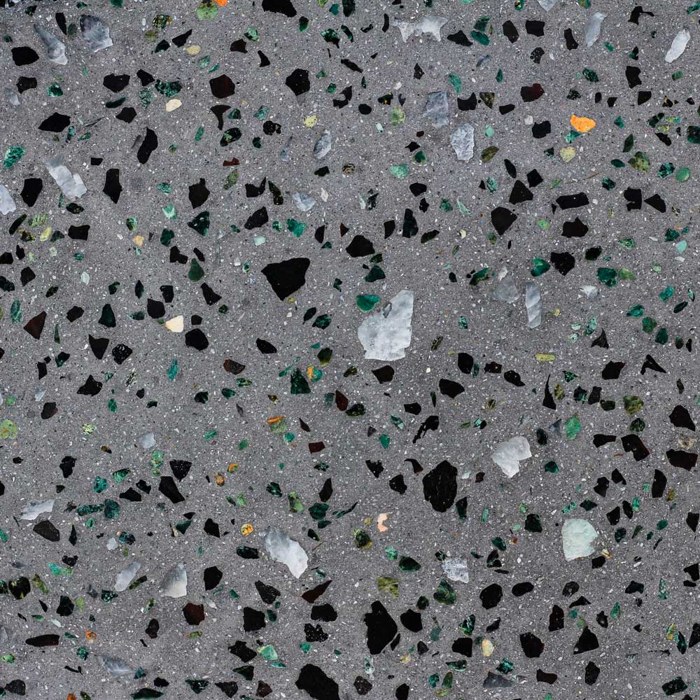 terrazzo, un material que nace en la Venecia del siglo XV y que se compone principalmente de cemento y materiales naturales como piedras, mármoles, cuarzos y pigmentos.