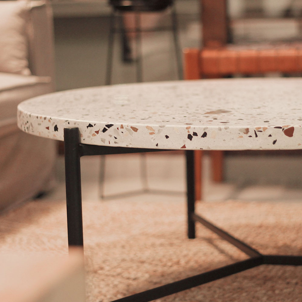 Cada mesa de terrazo es una pieza artesanal, creada a mano en Chile por artesanos que dominan el oficio con precisión y dedicación. Cada superficie se elabora cuidadosamente, combinando fragmentos minerales y pigmentos para lograr una textura y tonalidad únicas, imposibles de repetir.