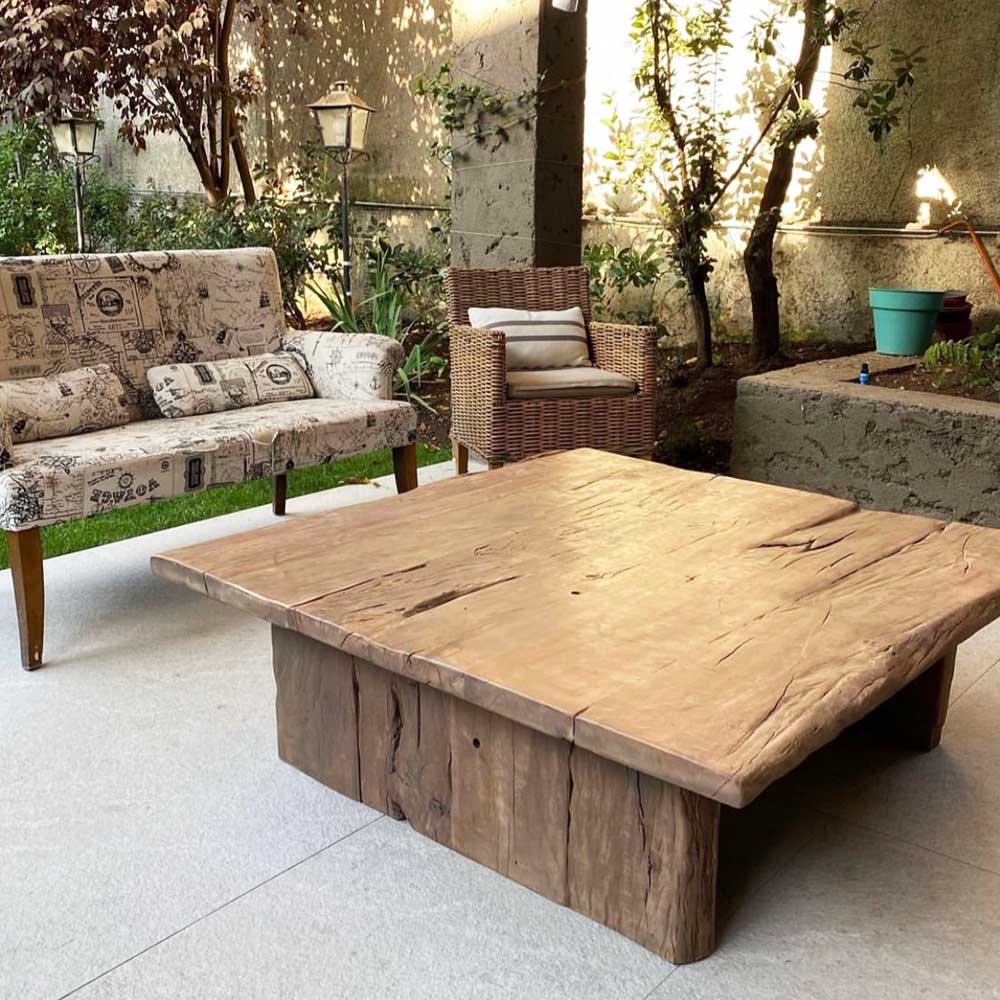MESA PREPARADA EN ROBLE RECUPERADO PREPARADO CON LIMPIEZA ABRASIVA A TRAVES DE PROCESO DE AIREADO Y GRATEADO. PROTECTOR NATURAL BARNIZ ULTRA MATE MIILESI