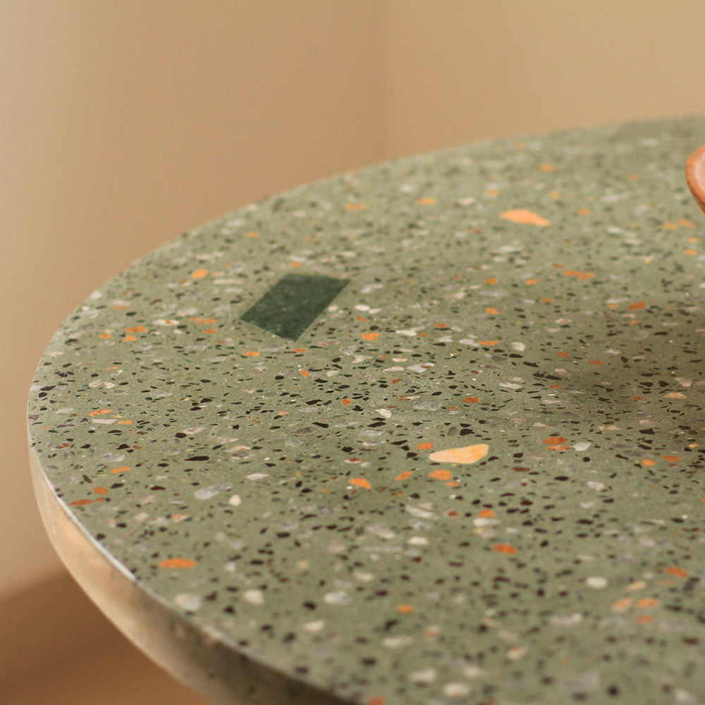 Cada mesa de terrazo es una pieza artesanal, creada a mano en Chile por artesanos que dominan el oficio con precisión y dedicación. Cada superficie se elabora cuidadosamente, combinando fragmentos minerales y pigmentos para lograr una textura y tonalidad únicas, imposibles de repetir.