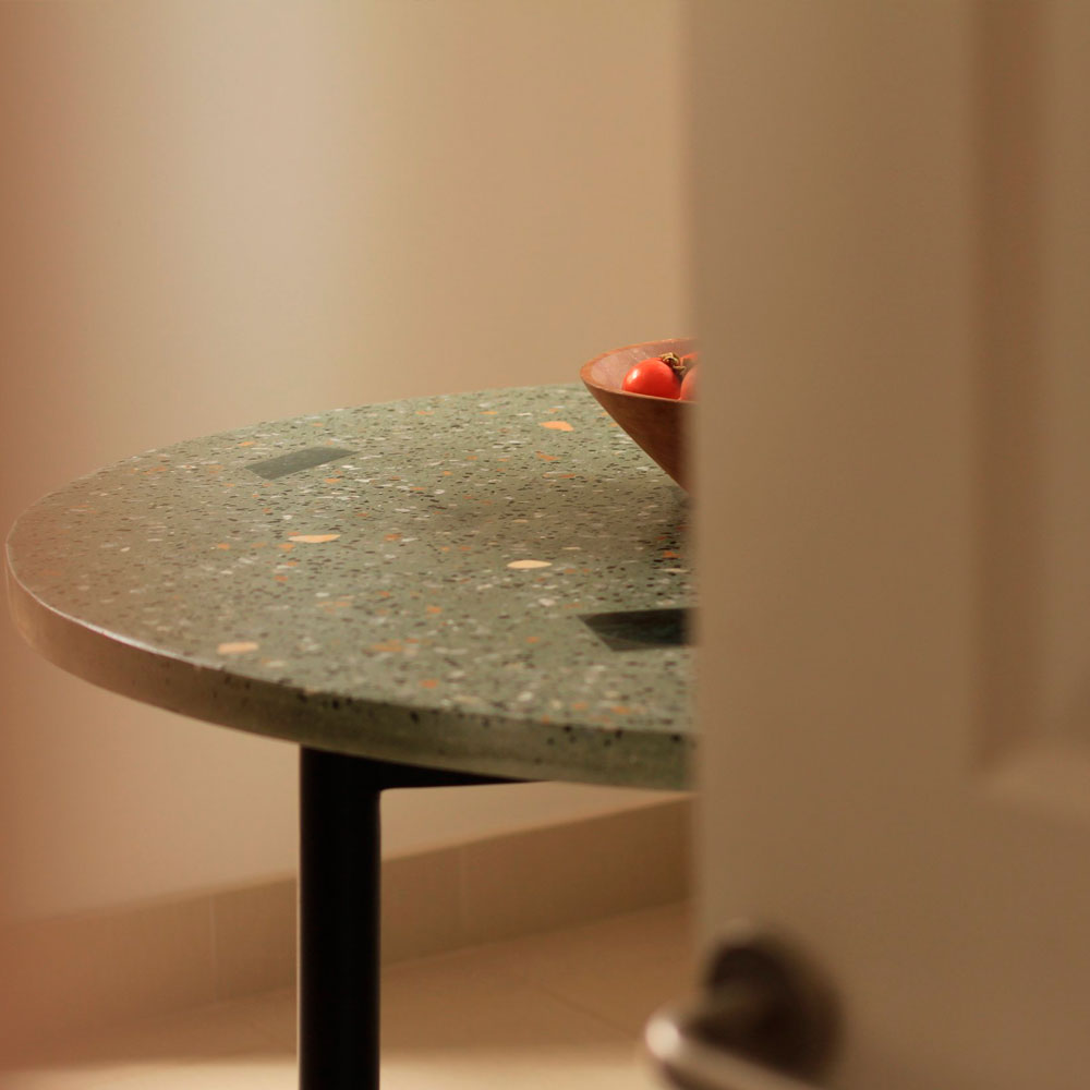 El terrazo chileno que utilizamos hace de cada pieza un objeto de carácter propio —resistente, elegante y lleno de identidad—.