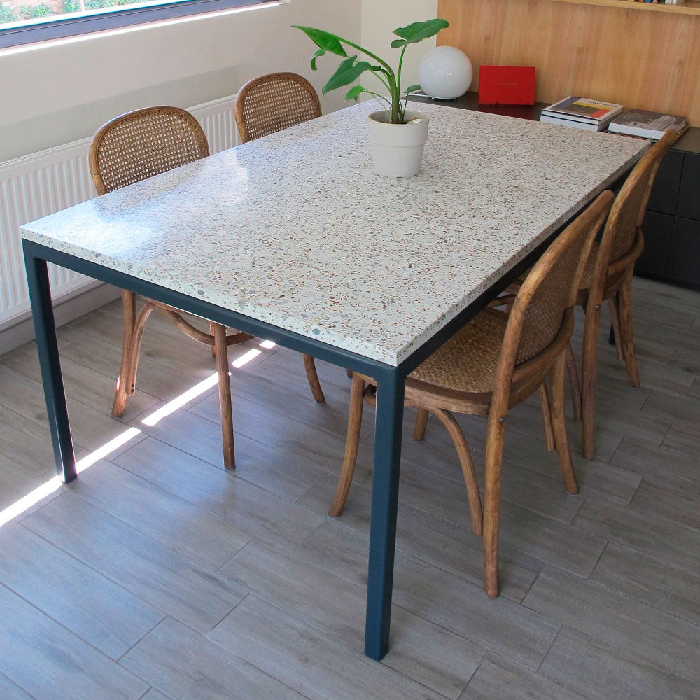 Fabricamos a medida, permitiendo elegir entre distintos tonos, granulados y acabados, para adaptar el diseño a tu espacio y estilo. Cada mesa refleja el equilibrio entre materialidad, diseño y calidad, con una estética contemporánea que mantiene la esencia del trabajo hecho a mano.