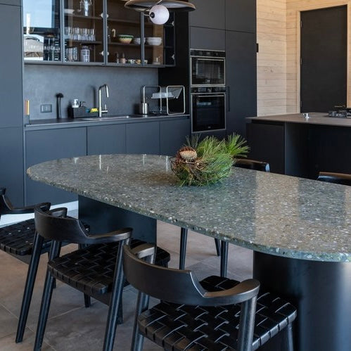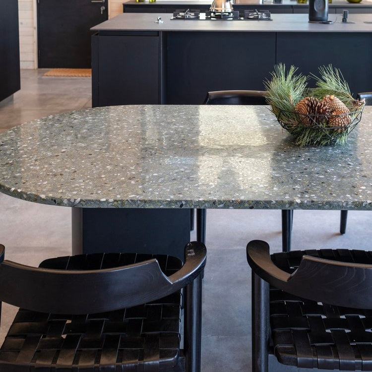El terrazo chileno que utilizamos hace de cada pieza un objeto de carácter propio —resistente, elegante y lleno de identidad—.