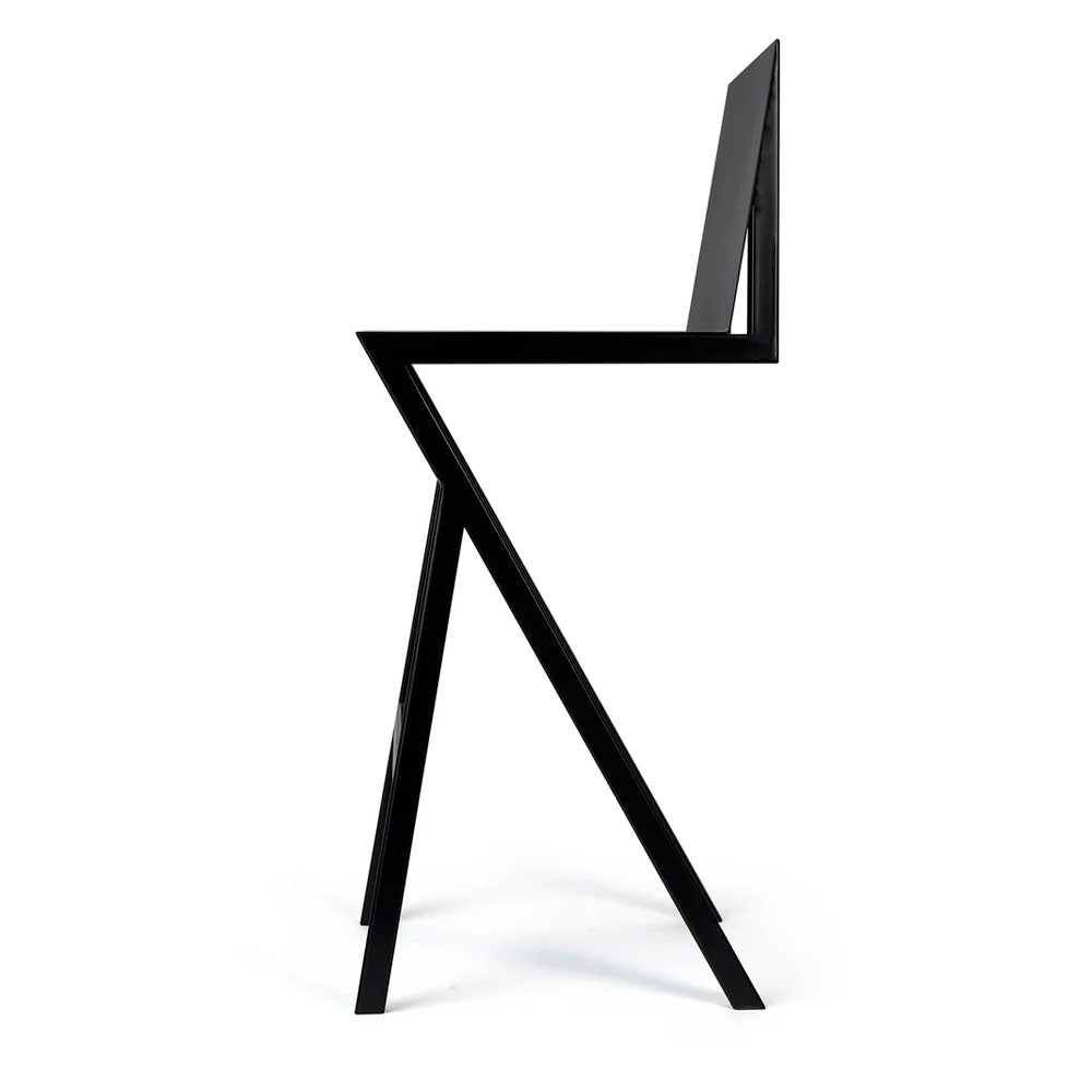 El concepto de la silla nace pensando en los aspectos mínimos de un objeto para sentarse, un asiento y un respaldo. En base a este planteamiento, decidimos plegar una lámina de fierro que logre esta funcionalidad, soportada por una estructura que otorgue ligereza y protagonismo al pliego, dando la impresión que el asiento y el respaldo estén flotando en el aire.