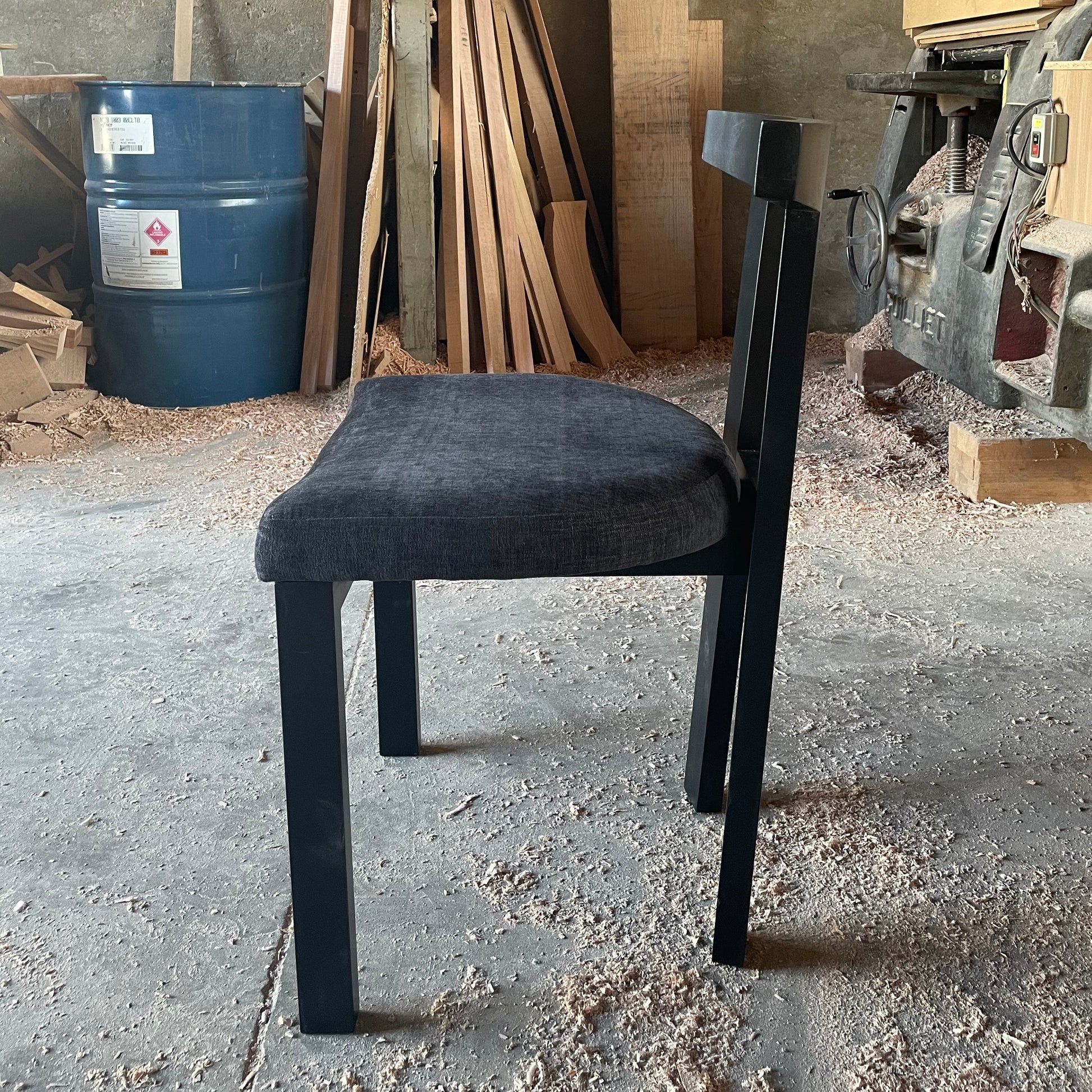 Descubre nuestra silla exclusiva, fabricada en madera de lenga teñida y tapizada en suave chenille.