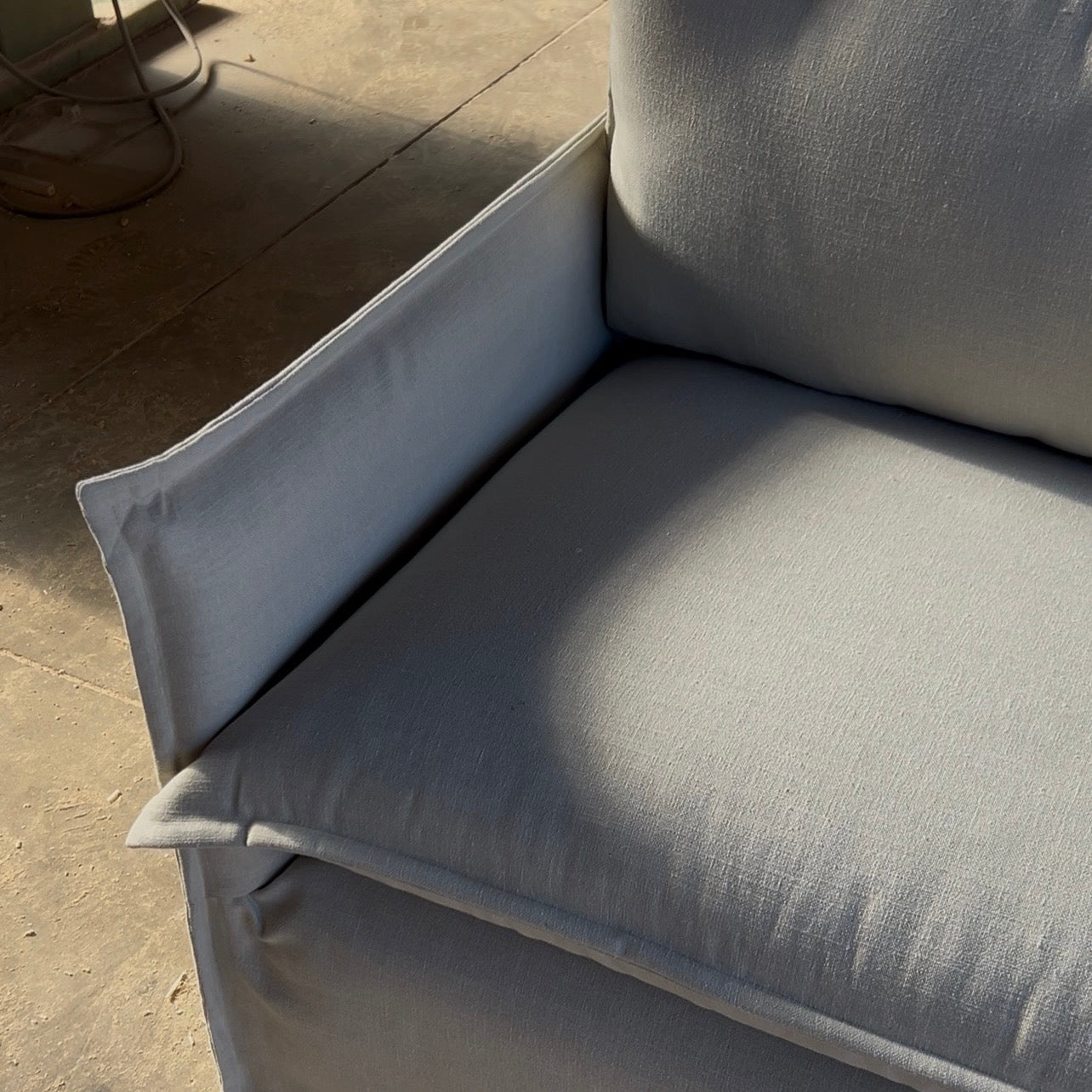 Sillón en lino hecho artesanalmente, 100% a mano por expertos en oficio. Cada pieza es única, elaborada con la más alta calidad en materiales y terminaciones. Ideal para dar calidez y estilo natural a tus espacios.