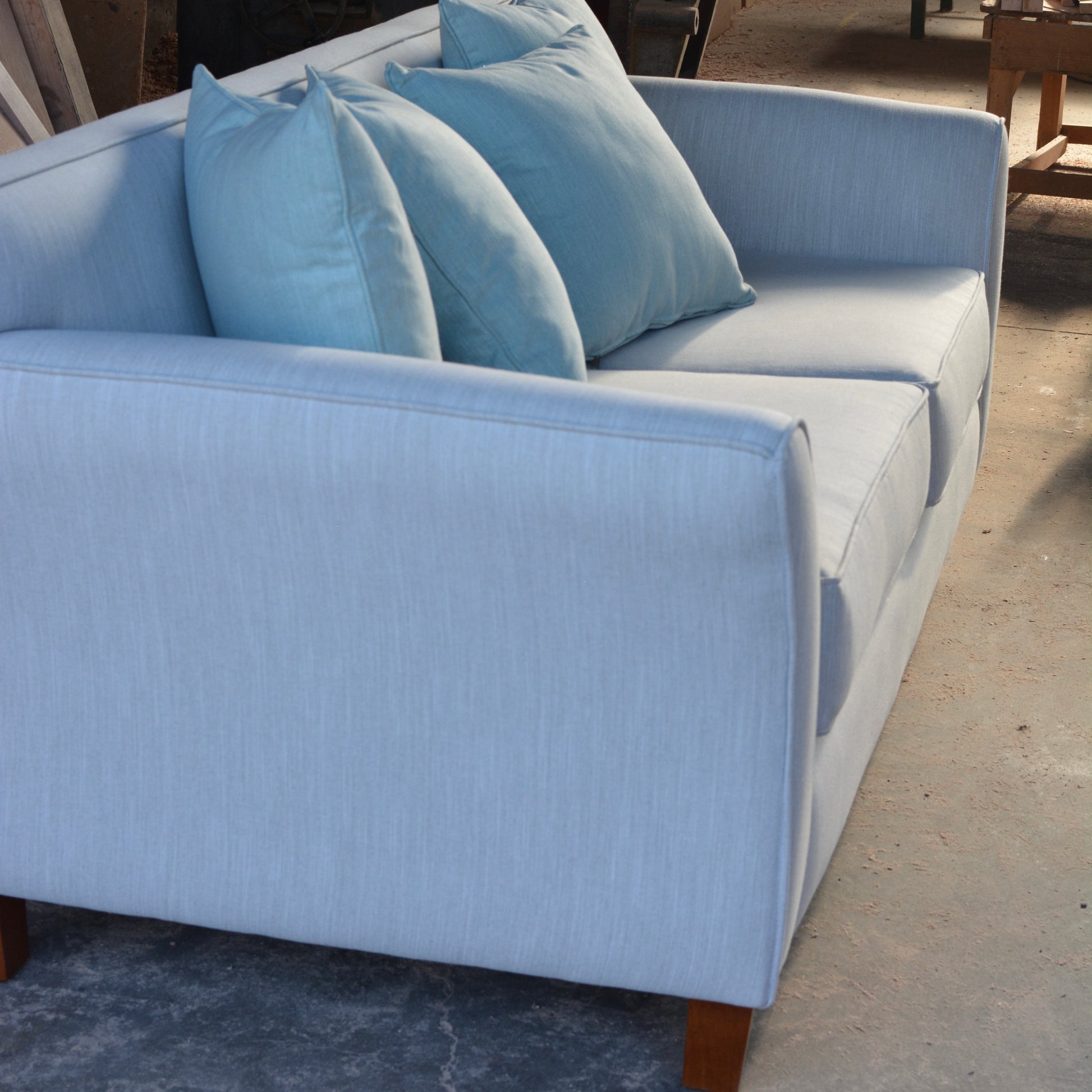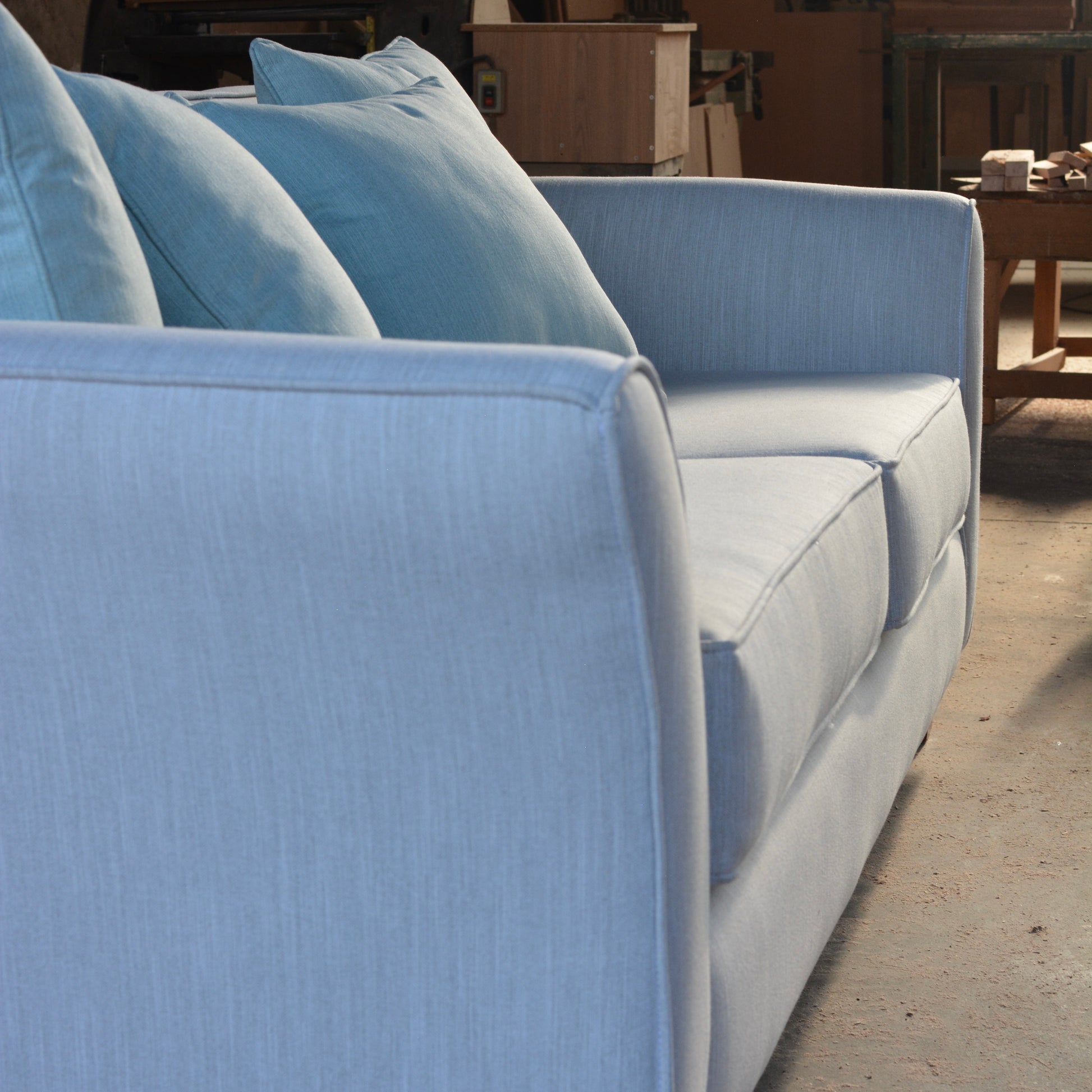 Sofá en tela Chenille hecho artesanalmente, 100% a mano por expertos en oficio. Cada pieza es única, elaborada con la más alta calidad en materiales y terminaciones. Ideal para dar calidez y estilo natural a tus espacios.